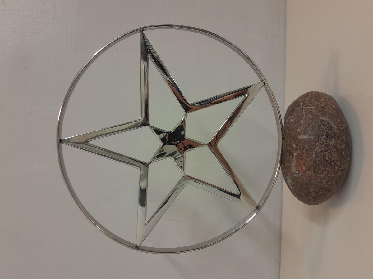 Exquisite fabricated polished stainless steel star mounted upon a Tasmanian River pebble