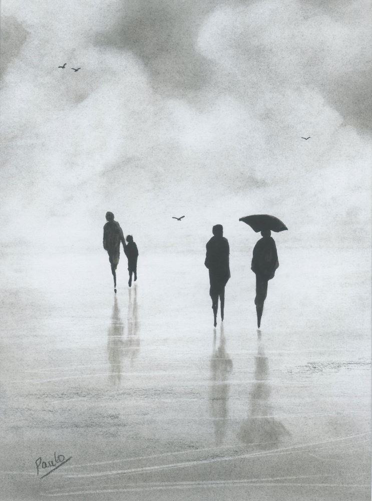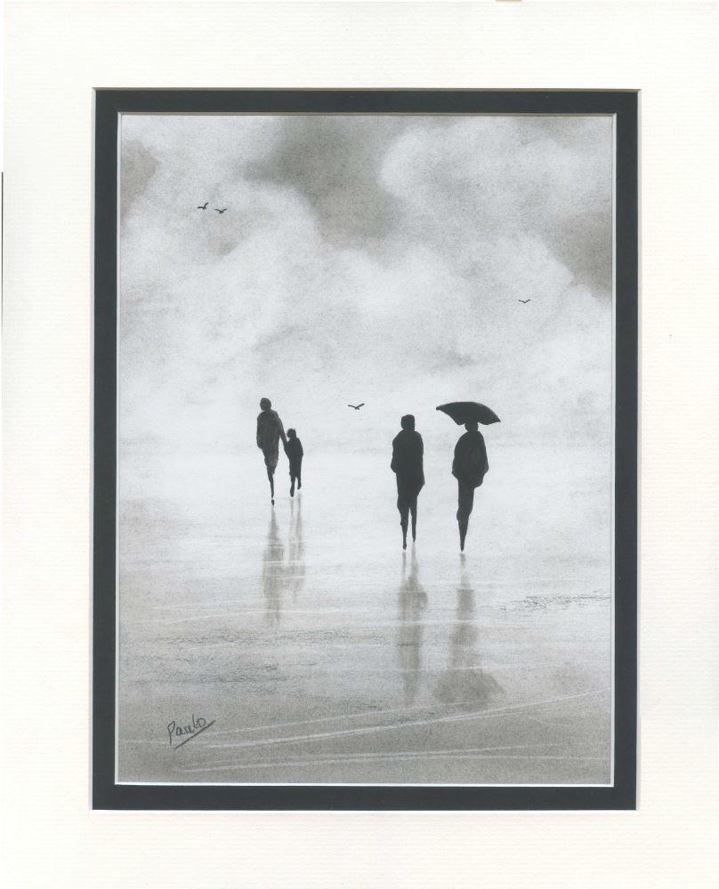 A charcoal seascape in impressionist style