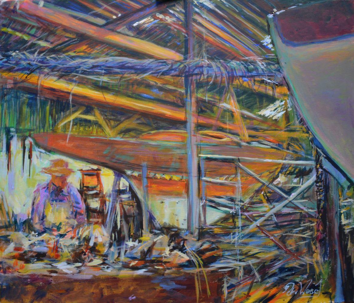 Painting an interior scene at Barton boatyard on one of the summer open days, this was the second smaller one painted in situ as a traditional rope and knot specialist demonstrated his skills.