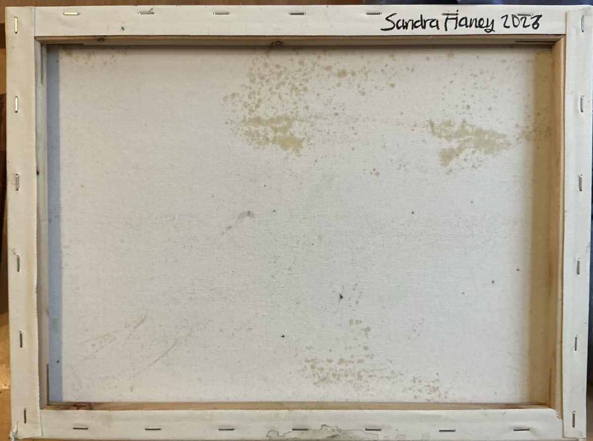 Oils on Canvas (On wooden stretcher frame with fixings provided so that it can hang without an additional frame. The sides are painted white.)