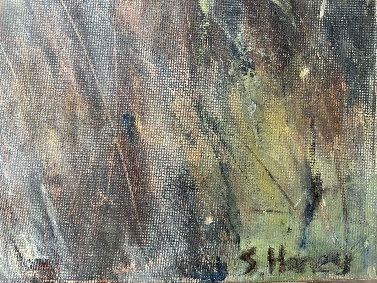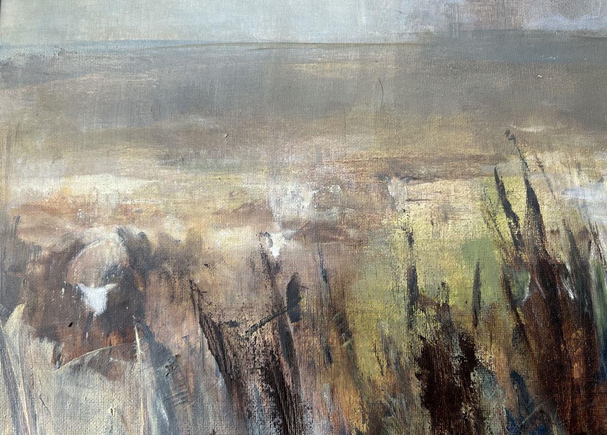 Oils on Canvas (On wooden stretcher frame with fixings ready to hang.)