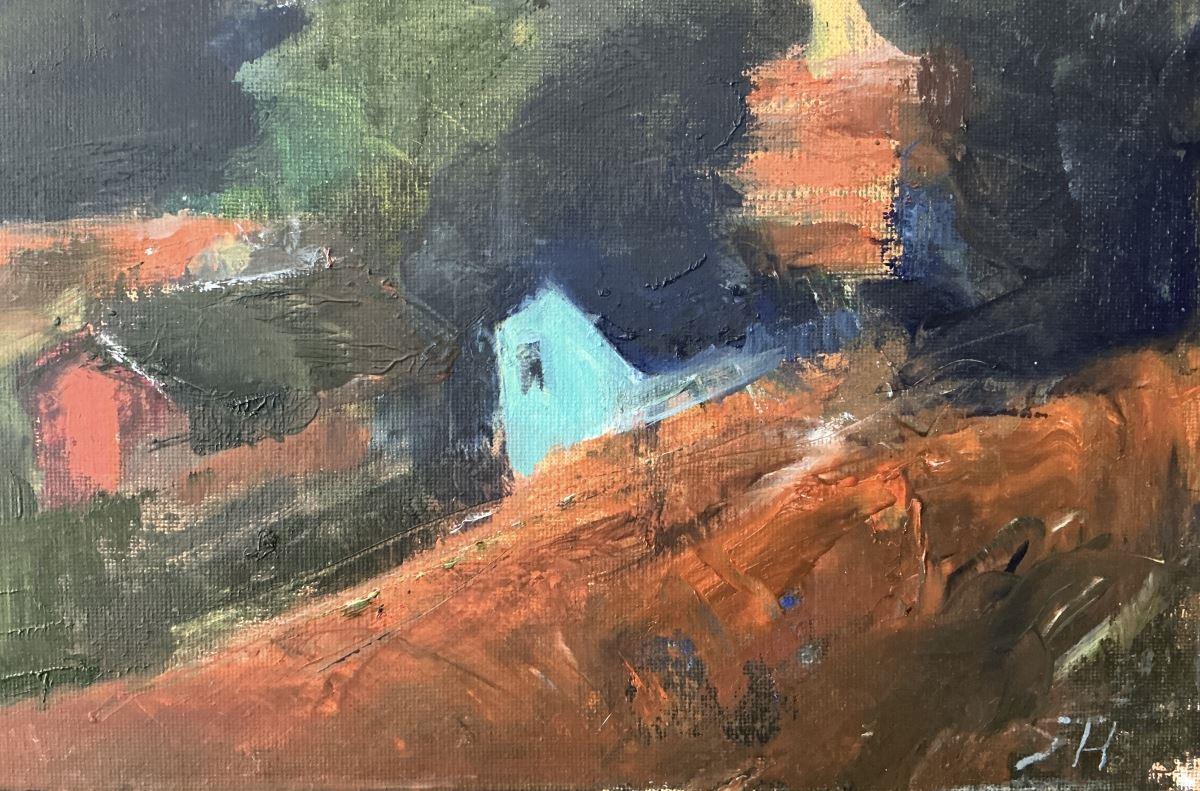 Oils on Canvas (On wooden stretcher frame with fixings provided so that it is ready to hang.)