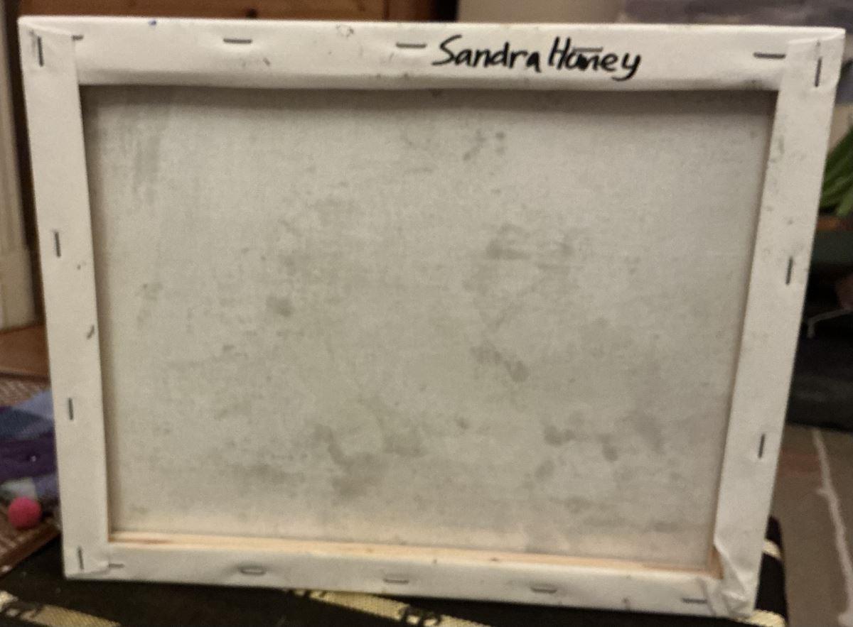Oils on Canvas (On wooden stretcher frame with fixings provided so that it is ready to hang.)