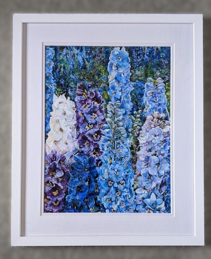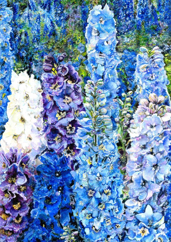 A classic close up view of the wonderful colours of these cottage garden flowers that grace gardens. Very vibrantly painted with my signature style