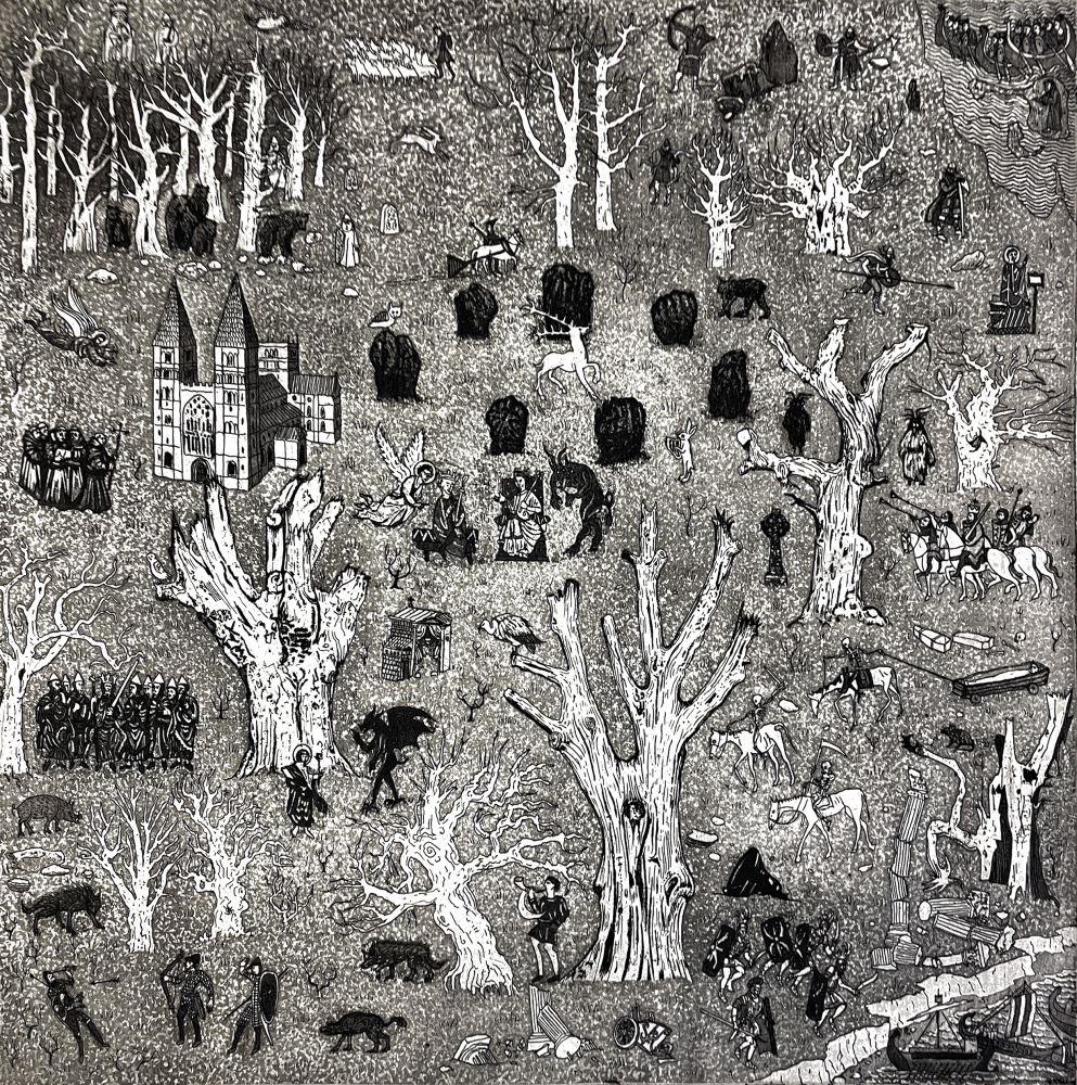 Dark Ages explores the period between the fall of the Roman Empire in 454 and the death of Harold Godwinson in 1066. Through a series of vignettes a number stories interlace to create an exciting visual feast. This is the first print chronologically in a series of 'Histories'. See below for a full synopsis.
